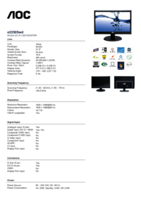 We fornisce 1 manuali pdf AOC e2250Swd per scaricare gratuitamente in base al tipo di documento: Scheda Tecnica